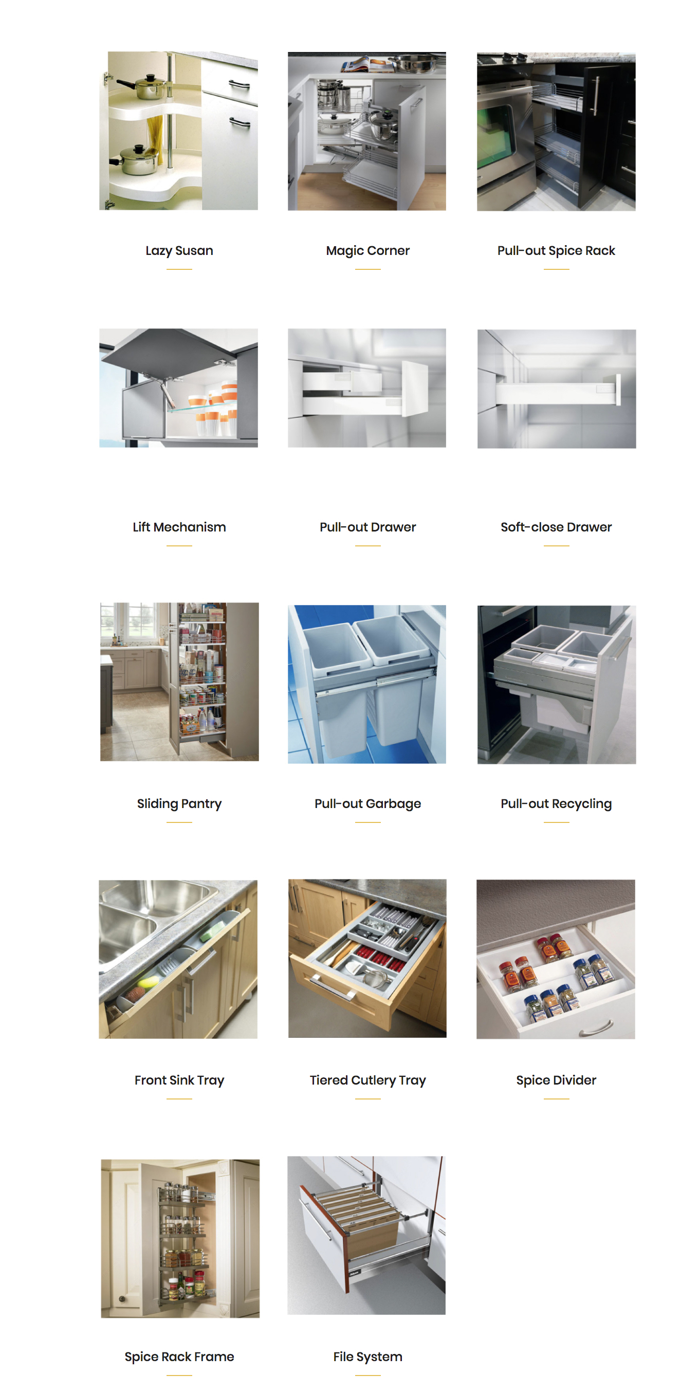 Standard hinges are Salice with 6 way adjustments or our customers can upgrade to our soft close Salice hinge with 6 way adjustments.
